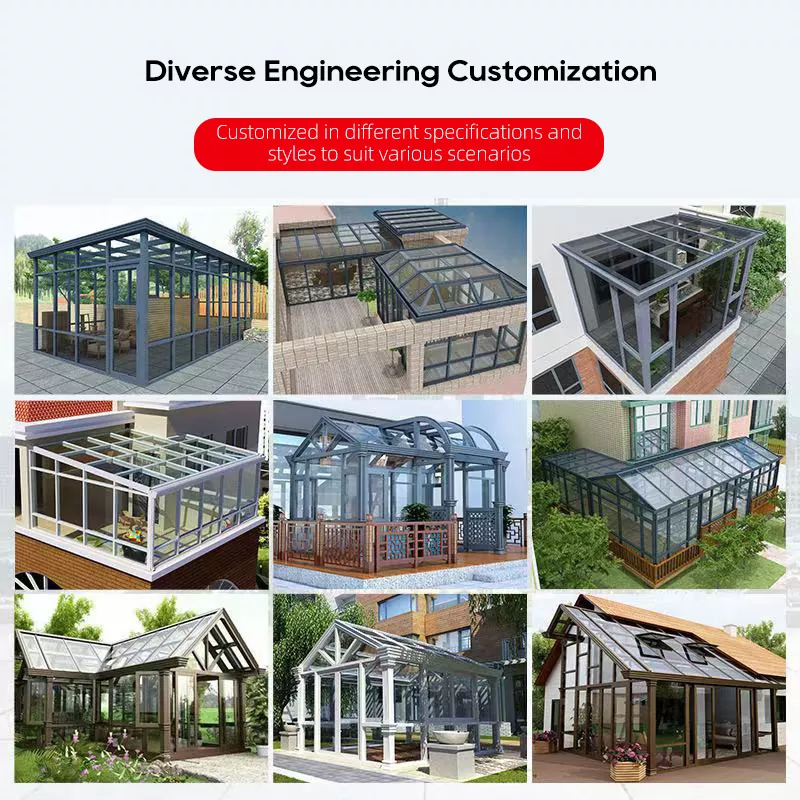 ہم فراہم کرتے ہیں۔ ون اسٹاپ سن روم کی تخصیص اور خریداری کی خدمات، ڈھانچے کے ڈیزائن، سائز، فریم کا رنگ، شیشے کی وضاحتیں، اور لوازمات کا احاطہ کرتا ہے۔ پروجیکٹ پر مبنی حل شامل ہیں۔ مفت سائٹ کی پیمائش اور بصری پیش نظارہ۔